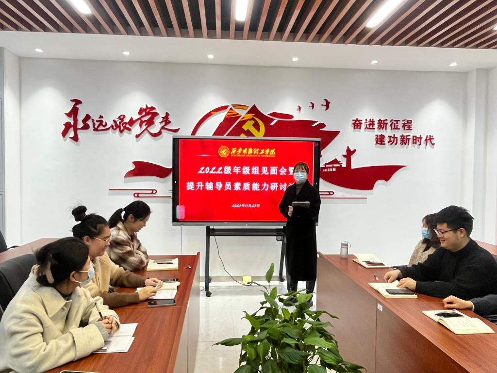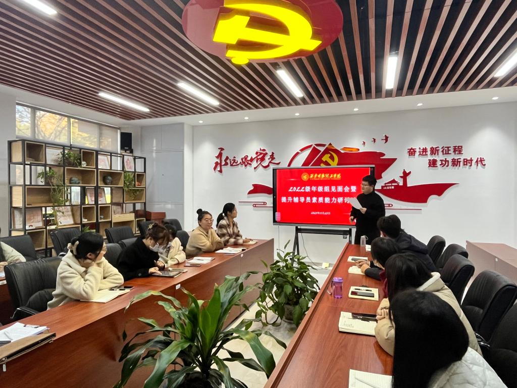 为加快推进beat365辅导员队伍专业化职业化建设,进一步提高beat365辅导员的综合素质和工作能力,11月23日上午,2022级年级组在明志楼北108党群服务中心开展年级组见面会暨辅导员素质能力提升专题研讨沙龙,2022级全体辅导员参会,会议由年级组组长李秋红主持。