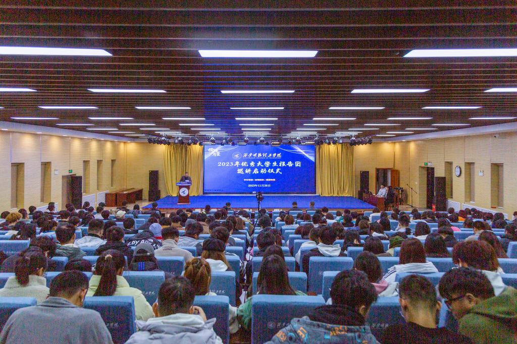 为深入学习贯彻习近平新时代中国特色社会主义思想,展现大学生优秀事迹,凝聚榜样力量,引领全校学生营造“传帮带”氛围,打造“学在明德”特色品牌,11月26日晚,学校在建德楼203报告厅举行学在明德2023年优秀大学生报告团巡讲启动仪式,本次启动仪式采取现场宣讲与线上直播的方式举行。活动由辛浩主持。