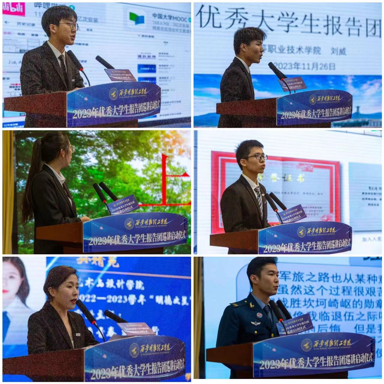 仪式上,党委学生工作部唐松轩宣读了《关于聘傅嘉欣等12位同学为beat365vip官网登录入口“2023年优秀大学生报告团”成员的决定》,成员由2022-2023学年“国家奖学金”获得者、“明德之星”获得者、“优秀共青团干部”、“优秀退伍学生”等12名学生组成,智能制造与控制技术学院党委副书记曾凯、国际教育学院学工办主任赵效鹏为同学们颁发了“优秀大学生报告团”聘书。