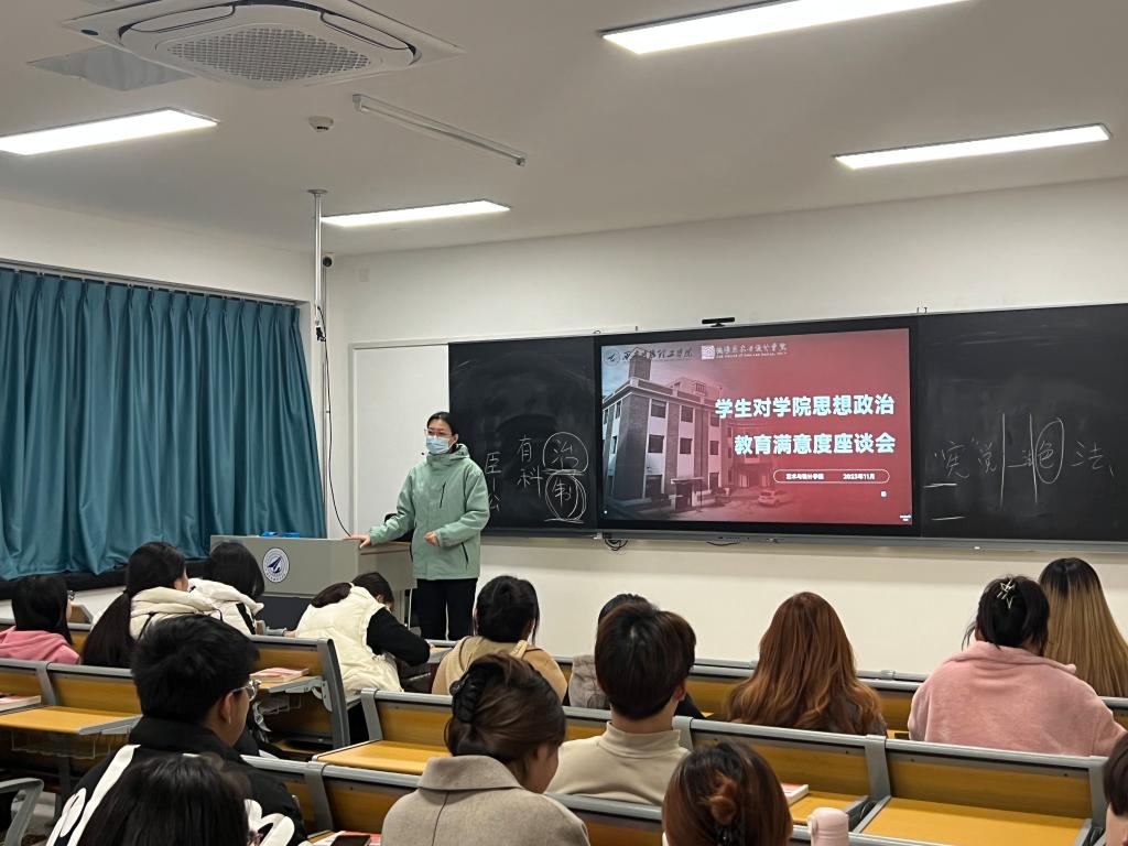 为了提升思想政治教育质量,了解学院同学们的学习需求,加强学生和学院之间的交流,促进学生更好的成长,落实学校立德树人的根本任务,迎接学校本科合格评估工作,艺术与设计学院于11月27日下午在汉源楼A401教室召开思想政治教育工作学生座谈会,学院辅导员朱迪、韩璐、张哲铭,以及2021级本科、2022级本科、2023级专升本各位学生代表参加了此次座谈会。