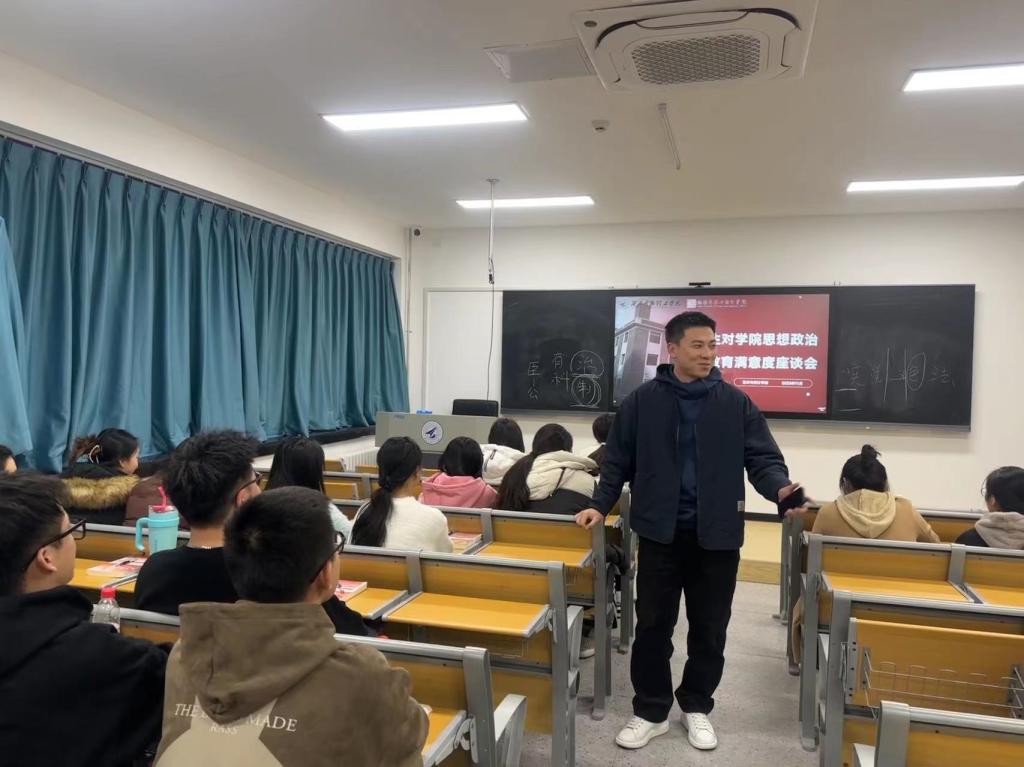 在平等、轻松、开放的氛围中,来自各个年级、不同专业的50余名学生代表结合班级的实际情况各抒己见,畅所欲言,从学生的独特视角,重点围绕思政课理论学习、课内实践活动、课堂纪律、任课教师教学的优缺点等方面提出了许多富有建设性的意见和建议,学生们激情洋溢、观点鲜明。三位老师针对部分问题进行了现场解答和深入交流,在认真听取了大家的发言后,辅导员韩璐和张哲铭表示,十分感谢各位同学提出的宝贵意见和建议,会后将会把大家提出的问题逐一梳理,尽快反馈给相关老师和部门,并督促跟进。