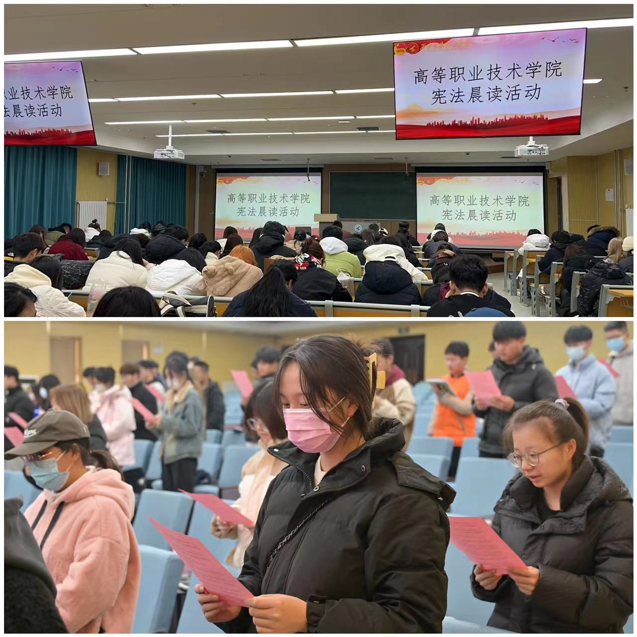 活动中,各学院同步利用早读组织学生齐声朗读宪法内容,同学们精神饱满,庄严肃穆,声声入耳,字字入心,从诵读中了解法律知识,在诵读中体会党和国家对公民合法权益的保护,对宪法精神有了更深刻的理解,在潜移默化中得到了精神上的洗礼,思想上的升华。