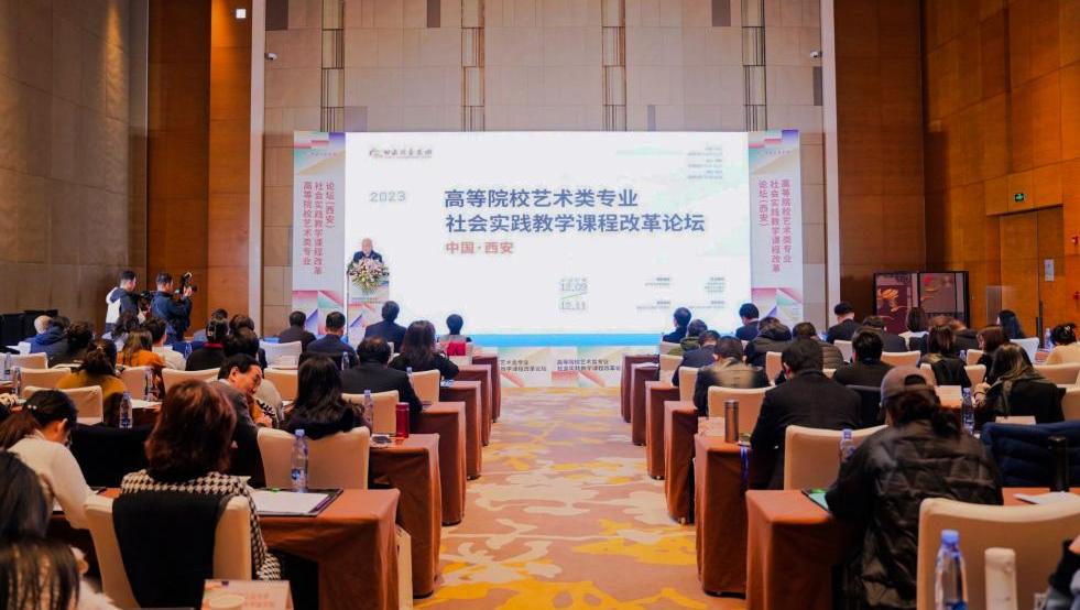 12月10日上午,由甘肃省文化和旅游厅指导,西安音乐学院、敦煌市人民政府、甘肃演艺集团共同主办的高等院校艺术类专业社会实践教学课程改革论坛在西安举办。来自陕西省、山西省、河南省、安徽省、宁夏回族自治区、甘肃省的110余所高校教师,以“艺术类专业社会实践教学课程改革”为主题,对艺术类专业社会实践教学课程改革平台搭建、团队与管理机制建设、项目实施与专业体系构建、典型经验与案例分析、具体项目开发等内容展开了深入研讨。甘肃省文化和旅游厅党组成员、副厅长龚佳佳,西安音乐学院党委书记张立杰,敦煌市委副书记、市长朱建军,甘肃演艺集团党委书记、董事长陈其,雁塔区人民政府副区长聂虎,各大院校的院长、专家学者齐聚本次盛会,论坛由陕西美术家协会副主席巨石主持。