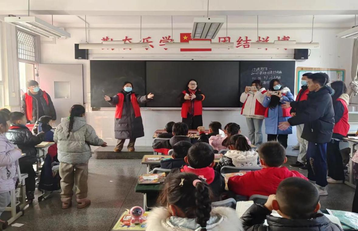 12月27日下午,校团委副书记刘雄,高等职业技术学院党总支副书记王飞、团委书记郭庆、团委副书记窦旸、辅导员代表刘洁、学校宣传大使王东兴、青年志愿者等30余人一起前往西安市长安区滦镇西留堡村小学捐赠爱心书籍。
