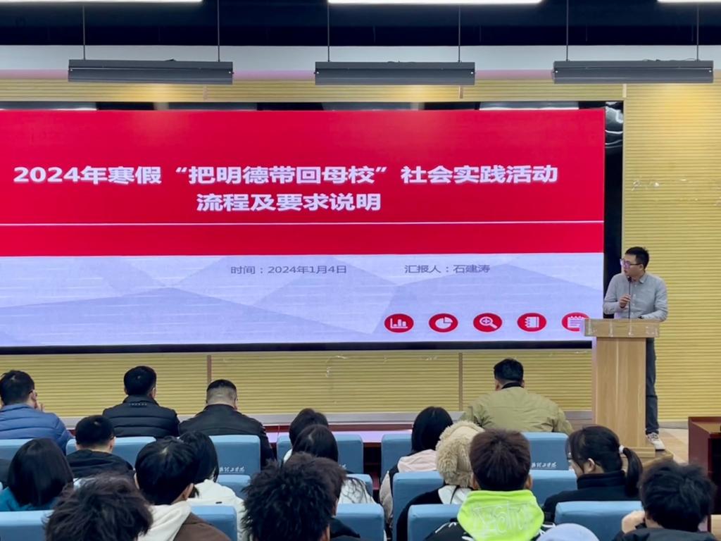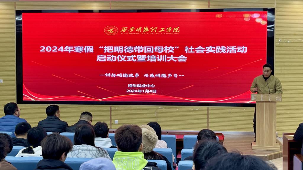 为充分发挥社会实践育人功效,激发在校学生参与招生宣传社会实践工作,丰富学生寒假生活,同时加强beat365与各省市及区县优质重点生源中学的联系,扩大招生宣传力度,1月4日中午招生就业中心在建德楼201报告厅组织召开“讲好明德故事 传递明德声音”--2024年寒假“把明德带回母校”社会实践活动启动仪式暨培训大会。招生办公室全体成员及宣传大使同学们参加了本次大会,会议由招生办公室主任朱雪松主持。