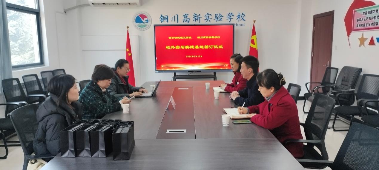 1月10日上午,语言文化传播学院刘勇副院长、柴芸副院长及李珂老师赴铜川高新实验学校调研并签订校外实习基地协议书。铜川高新实验学校陈文斌校长对语言文化传播学院的到访表示欢迎,并对学校的基本情况做简要介绍。