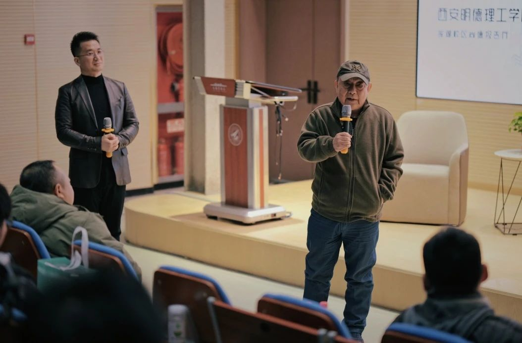 柏雨果教授观影后评价道:对同学们的展映表示祝贺,很高兴在影片中看到同学们思维活跃,题材多样,运用多种表现手段。但技术上还不是很成熟,和电影制片场电视台的水准还有一定的差距,影片叙事上还要更加清晰完整,只要同学们有热情一定会越拍越好。看到尚德报告厅有这么好的条件,希望以后西安美院、西安理工大以及其他院校的老师同学们能够汇聚于此,一起展映交流,举办专业讲座,取长补短相互学习,共同提高陕西高校视听艺术创作水平,期待同学们中间出现像张艺谋一样的人才。