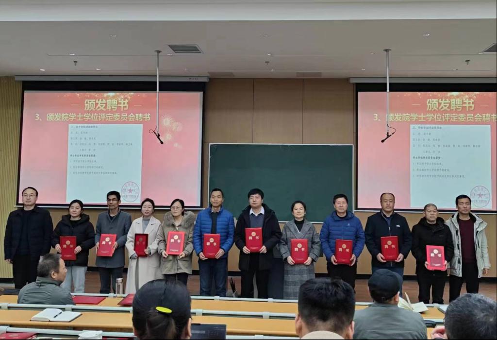 会议首先举行了各专门委员会委员聘任环节。学院执行院长翟书颖等班子成员分别为院教学督导、学士学位评定委员会、学术委员会、教学工作指导委员会成员颁发了聘书,并希望各位委员在学科建设、学术评价、学术发展和学风建设等事务中行使决策、审议、评定和咨询等职权。