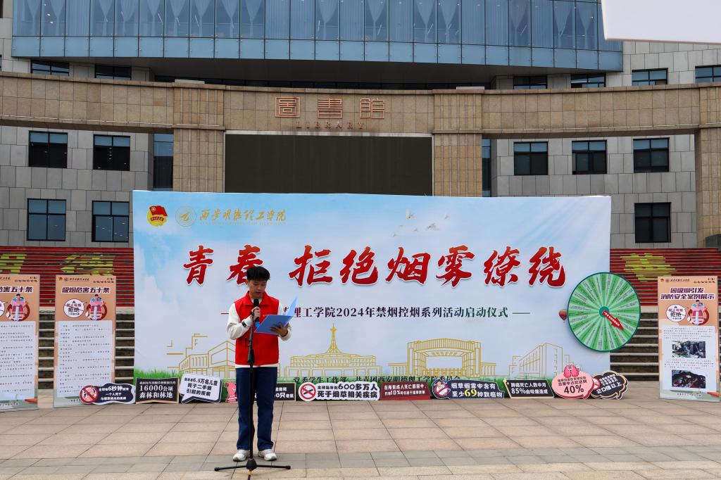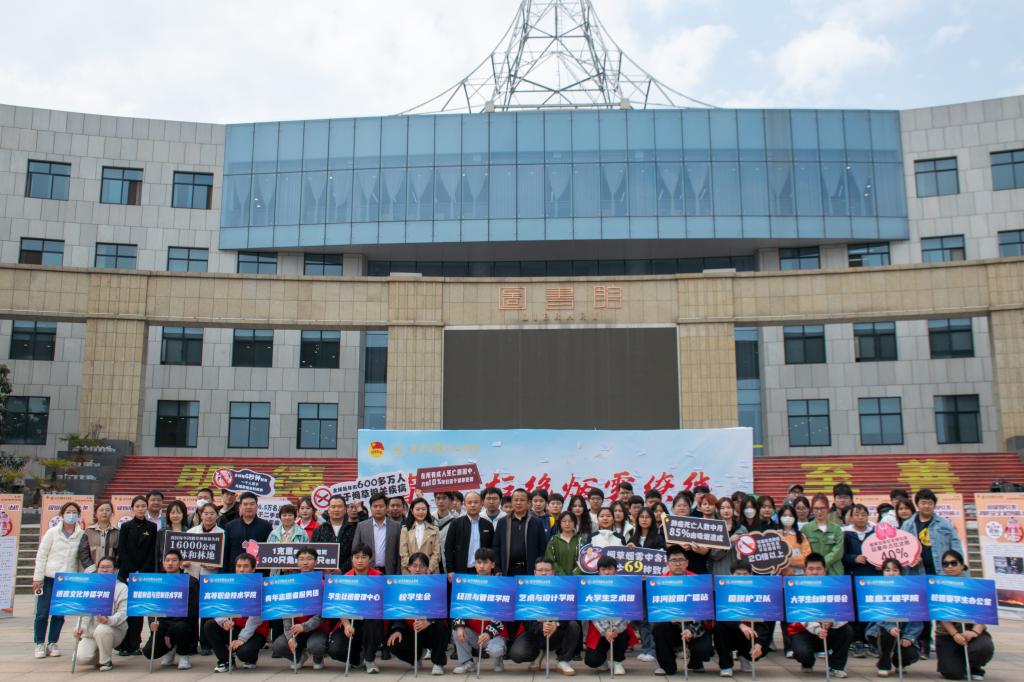 为积极创建无烟校园,让同学们全面了解吸烟危害,提高健康意识。3月15日,学校党委学生工作部、校团委在中心广场联合举办“青春,拒绝烟雾缭绕”2024年禁烟控烟系列活动启动仪式。学校相关职能部门、教辅单位、二级学院相关负责人以及学生代表们参加了活动。