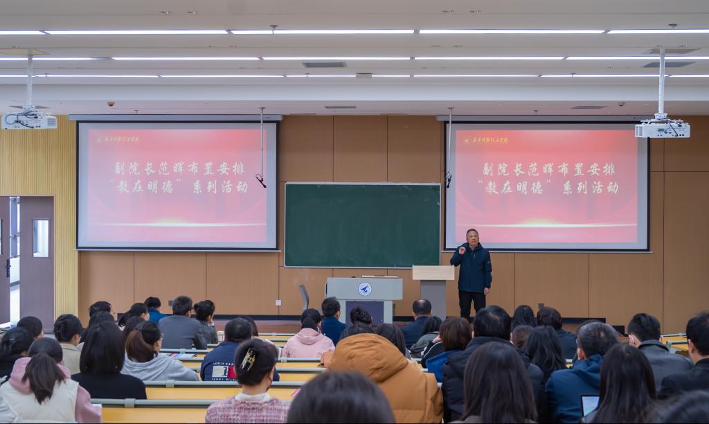 3月13日下午,信息工程学院召开全院大会,重点传达学校新年度工作部署会精神,部署学院“教在明德”系列活动,学院领导班子成员及全体教职工参加,学院教学副院长范晖主持。