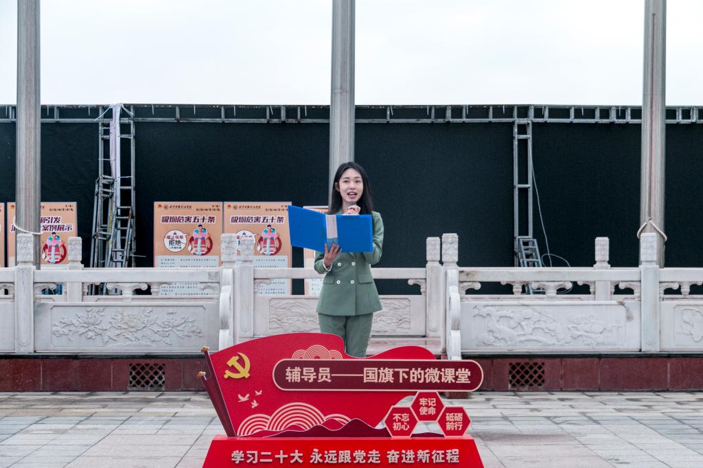 3月25日,“辅导员说成长”——第三十二期辅导员讲微课“以书润心,与智同行”国旗下的微课堂爱国主义教育系列活动在学校中心广场举行,党委学生工作部老师、艺术与设计学院、国际教育学院师生代表参加活动。