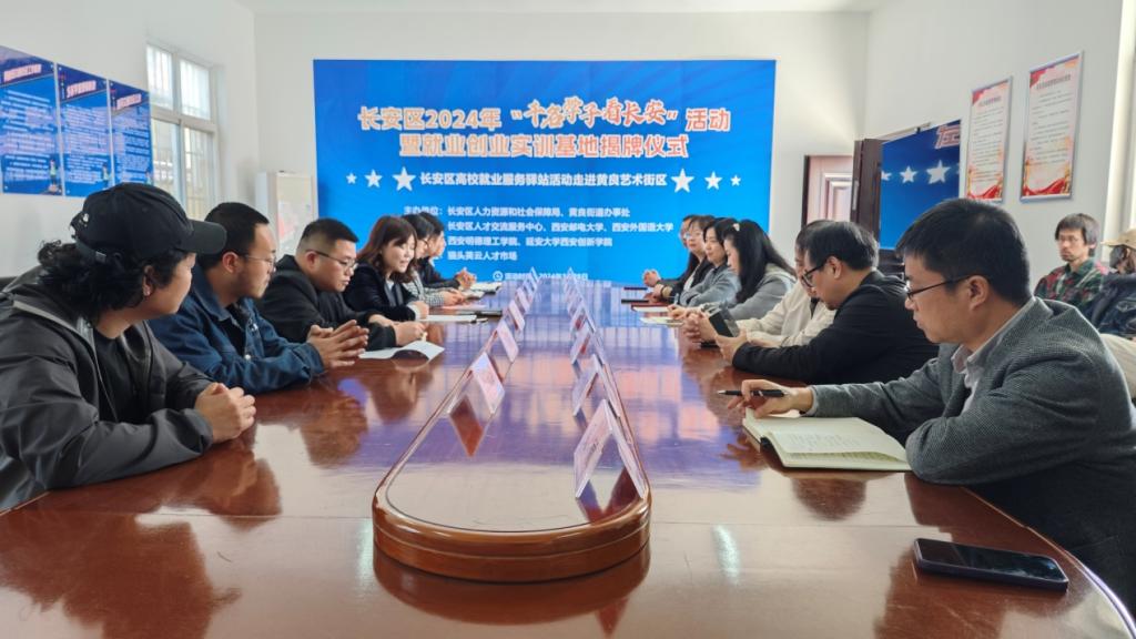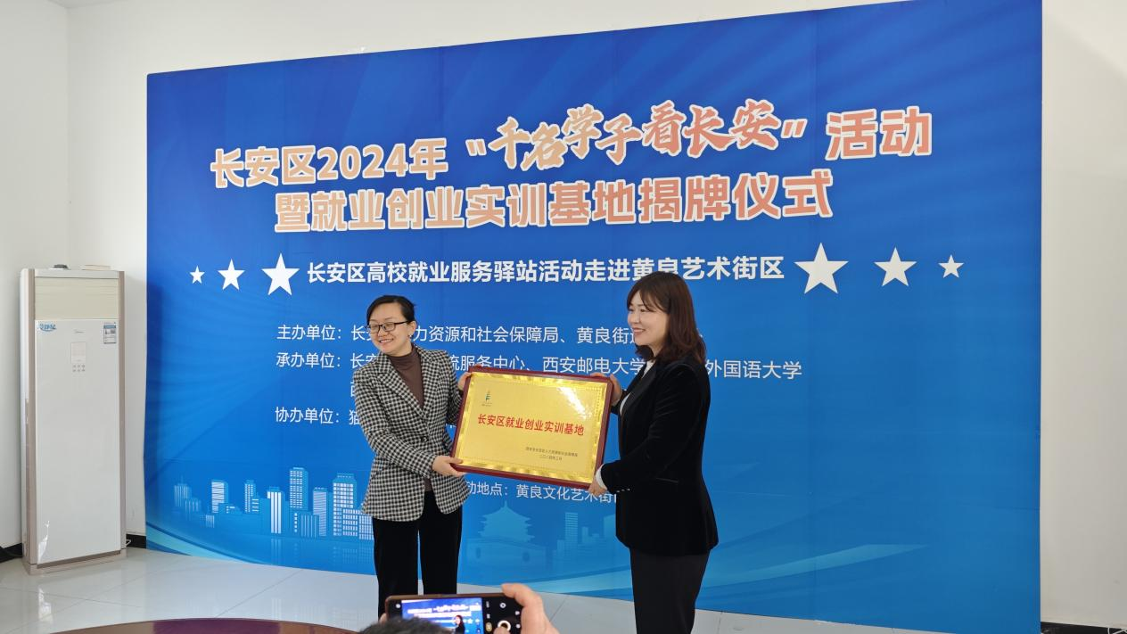 本次活动长安区人力资源和社会保障局在黄良街办黄良文化艺术街区设立了大学生就业创业实训基地,西安邮电大学、beat365vip官网登录入口等5所高校为黄良街办黄良文化艺术街区授牌就业创业实训基地。