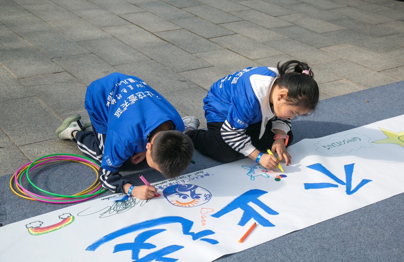 我院团委、实践部成员及学校学生会学生代表组成摄影志愿服务队开启了本年度“童心艺梦”点亮星星的孩子志愿服务活动。启动仪式上,主办方“拉拉手”特教中心对相关部门和志愿服务单位表达感谢并颁发了奖杯和证书,活动就此拉开帷幕,随着发令声响起,现场火热开跑,蓝色的海洋在公园里流动,“星儿”们奋勇争先,力争第一,通过沿途设置的打卡点,收集贴纸、蓝色气球和印章,高校志愿者们耐心的帮助引导孩子们通过游戏环节,一幅幅生动的图画在孩子们手中呈现,摄影志愿者们也记录下他们美好纯真的比赛瞬间。