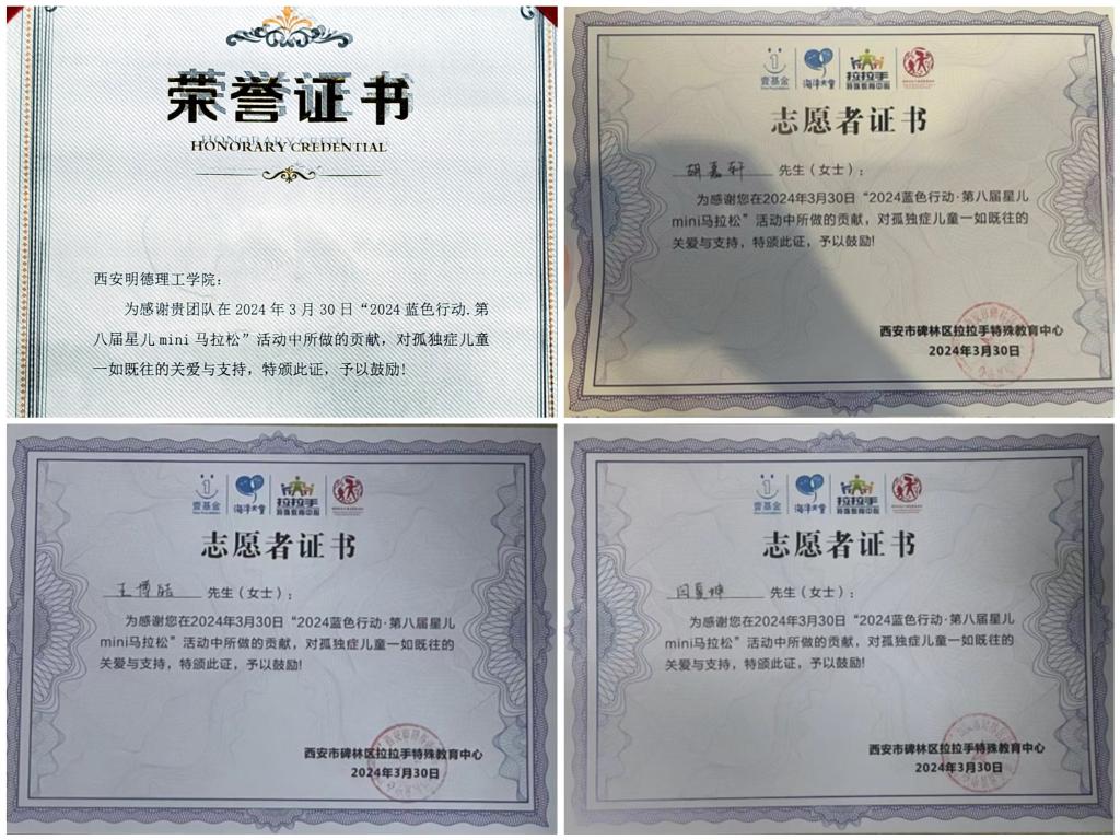 西安市碑林区拉拉手特殊教育中心对志愿者们的爱心和无私奉献表示感谢,为beat365颁发的组织单位荣誉证书,对志愿者颁发个人荣誉证书。
