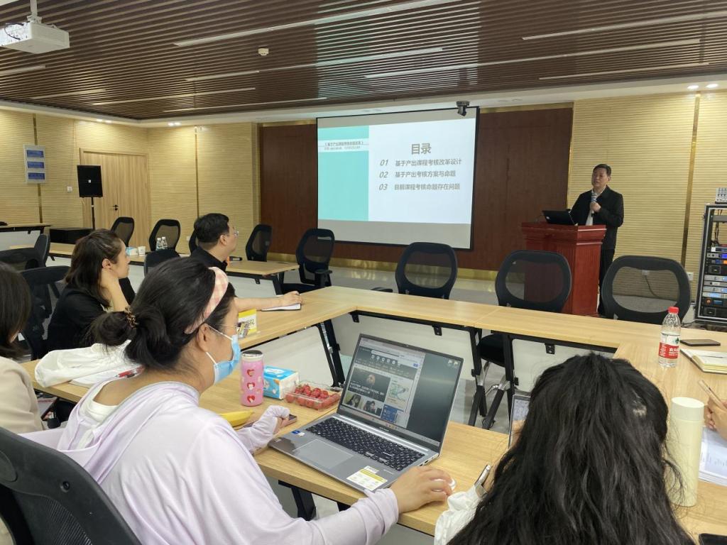 随后,万明教授深入阐述了“基于产出导向的课程考核改革设计”的理念,并详细解析了“基于产出的考核方案与命题制定”的原则。同时,他还对“当前课程考核所面临的挑战与问题”进行了全面剖析。为了使讲解更具实践性和可操作性,万明教授还结合了一门理论课程与一门实践课程的实例,进行了生动的实战分享。