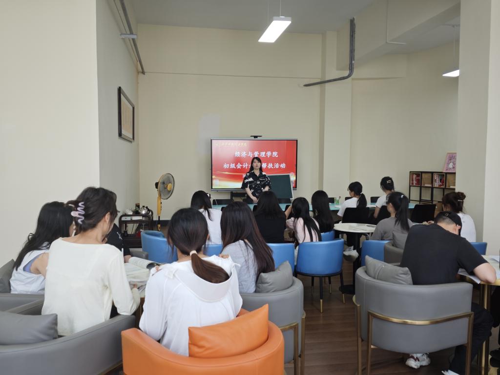 为营造优良学习氛围,激发学生学习兴趣,帮助学生掌握正确的学习方法,解决学生在备战初级会计资格考试过程中遇到的困难和问题。5月15日,经济与管理学院在图书馆汇思空间开展初级会计考试帮扶指导,学院国际经济与贸易专业负责人王维新教授,会计学专业教师周阳担任学业帮扶导师。