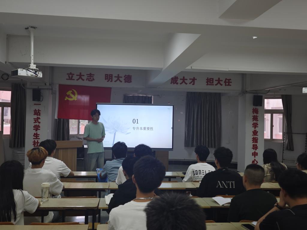 为进一步加强高职学生对专升本的认识,解答专升本复习过程中的困惑,树立在专业方面继续深造的信心和备考的动力,营造“学在明德”的良好学风,进一步激发高职学生专升本的积极性。2024年5月20日下午18时,智能制造与控制技术学院学生第三党支部联合高等职业技术学院学生第一党支部在梅苑“一站式”学业社区开展“榜样引领专升本梦起航”学长有话说系列活动。智能制造与控制技术学院学生第三党支部书记赵晨琛、高等职业技术学院第一党支部书记赵英洁,各支部入党积极分子、发展对象、预备党员参会。
