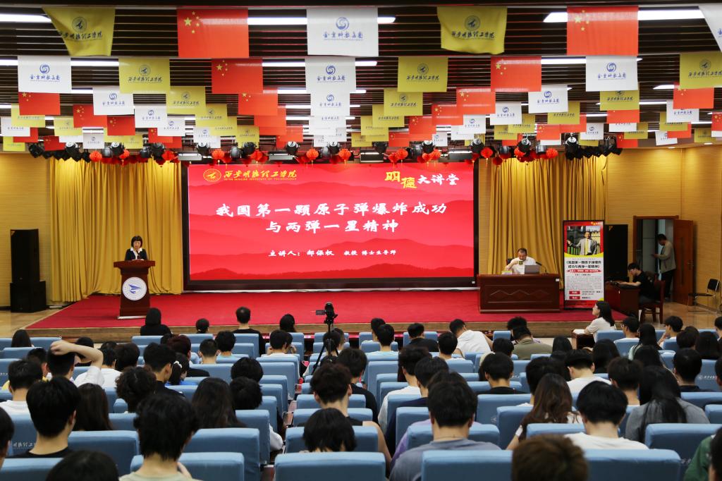 为弘扬和传承中国共产党红色革命精神,5月22日晚,西北工业大学郝保权教授应邀在beat365建德楼203报告厅作了题为《我国第一颗原子弹爆炸成功与“两弹一星”精神》主题报告,给明德学子上了一堂爱国主义教育课。本次讲座是beat3652024年阅读文化节系列活动之“学术月讲座”第三场,由图书馆馆长王爱霞主持,400余名师生聆听了讲座。