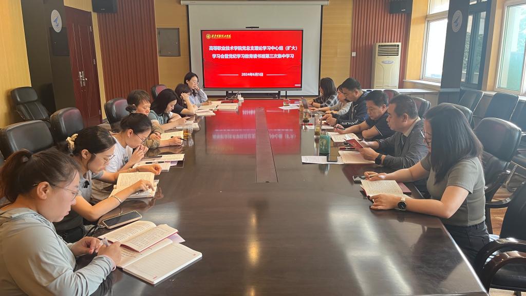 为深入开展党纪学习教育,强化党的纪律建设,增强党员纪律意识,发挥党员先锋模范作用。6月5日,高等职业技术学院在明理楼216会议室召开了党总支理论学习中心组(扩大)学习会暨党纪学习教育读书班第三次集中学习。院党总支委员、各党支部书记、党建专干、党校负责人、团委书记及各年级组长参加会议,会议由党总支书记王庭良主持。