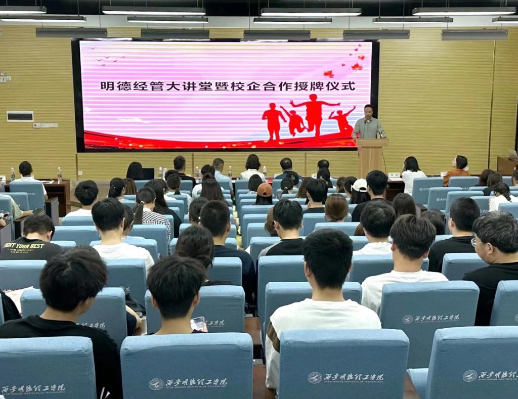 为深化校企合作,促进产教融合,提高应用型人才培养质量。6月18日,经济与管理学院在建德楼201举办明德经管大讲堂暨校企合作授牌仪式。西安市注册会计行业党委副书记陈晶、永拓会计师事务所管理合伙人黄天友、陕西中鸿财税研究院总经理赵江波、陕西兴华会计师事务所高级合伙人周思彤,经济与管理学院院长郭鹏、党委书记兼行政副院长何文举、金融产业学院副院长刘敏、市场营销专业负责人秦东方、财务管理专业负责人刘玲娴、会计学专业负责人张荣斌以及师生代表150余人参加了活动。活动由学院教师孙浩森、吕若欣共同主持。