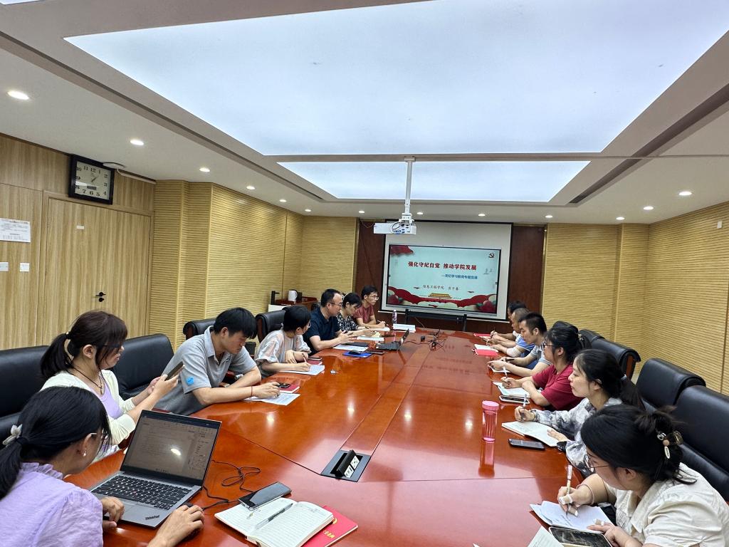 为推进党纪学习教育走深走实,筑牢全体党员党纪防线,引导党员切实做到“学纪、知纪、明纪、守纪”,6月27日,信息工程学院党委书记肖千春在0号楼207室,讲授了题为“强化守纪自觉,推动学院发展”的党纪学习教育专题党课,学院教工第一党支部全体党员参加。