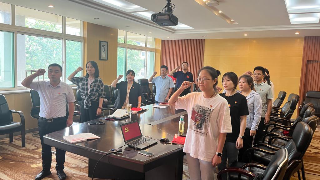 在“七一”主题教育活动中,党总支书记王庭良带领大家重温入党誓词,为党总支委员发放了政治生日贺卡和党旗摆件;通报了中共中央组织部最新发布的中国共产党党内统计公报、领学了人民日报社论《凝聚推进中国式现代化的磅礴力量——热烈庆祝中国共产党成立一百零三周年》。通过系列活动纪念党的103岁生日,并激励党员干部“不忘初心、坚定信仰”,确保高等职业技术学院稳定向好发展。