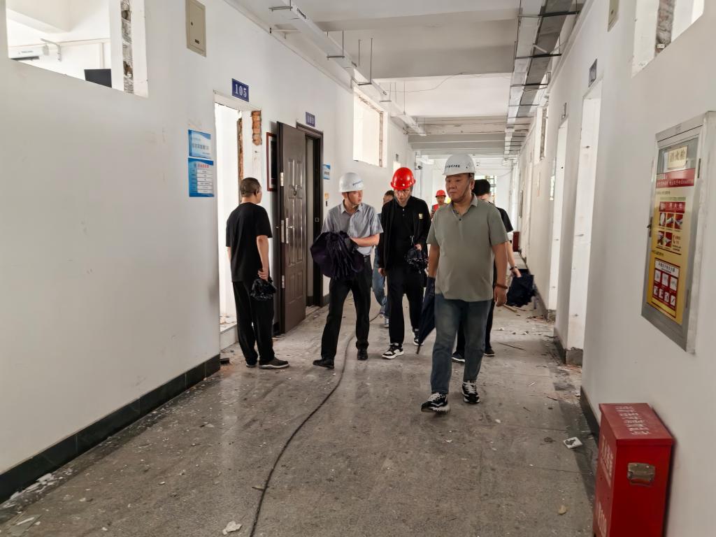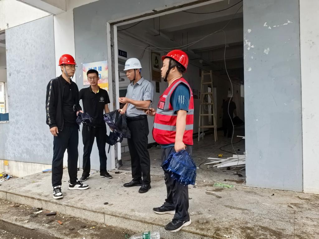 近期,我市天气异常,雷雨大风频发,给校园安全带来潜在威胁。为确保师生安全及校园设施稳定,根据校领导的统一部署,后勤管理处迅速响应,于2024年7月5日上午9:00组织人员对学校所有楼宇及在建工地进行了全面细致的安全检查。