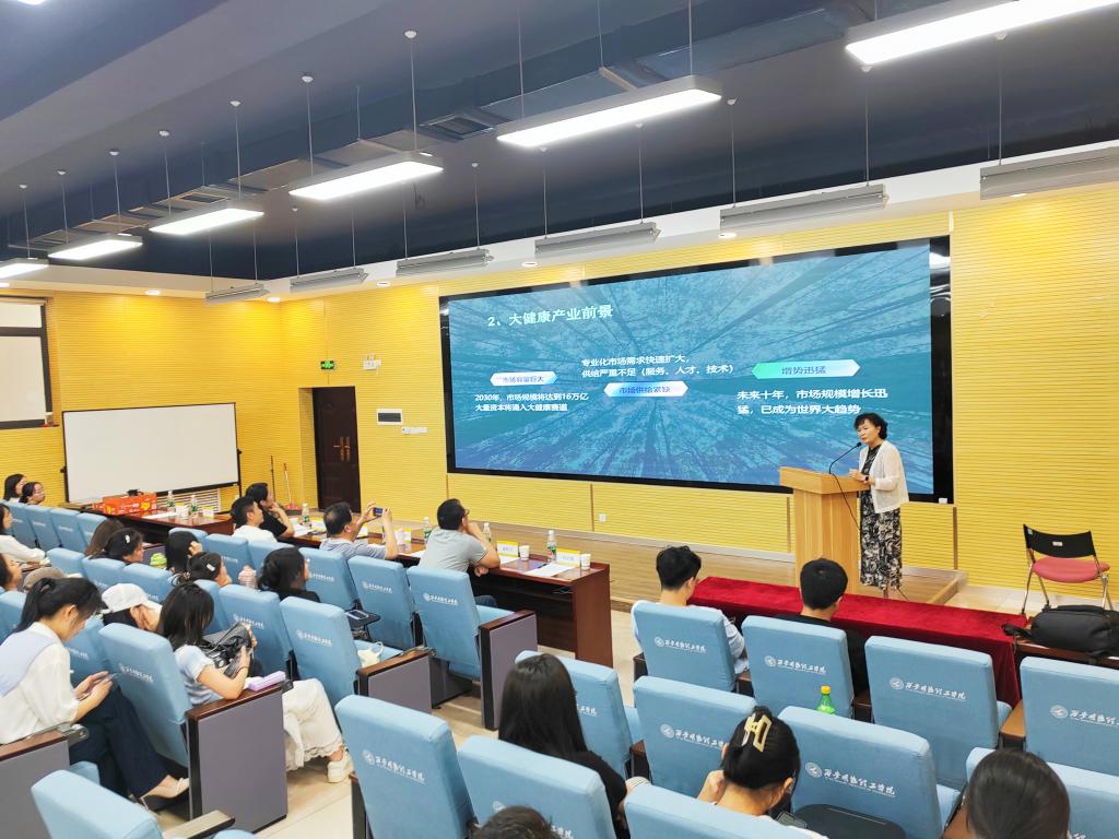 活动伊始,经济与管理学院院长郭鹏教授代表学校致辞,他讲到,校企合作是教育与产业深度融合的具体体现,是推动人才培养模式创新、提高人才培养质量的重要途径。大健康产业的发展关乎实现国民健康长寿以及对美好生活的追求,是具有巨大市场潜力的新兴产业。作为应用型人才培养的学校,需要在理论研究和专业建设上向大健康产业拓展,培养满足社会多样化需求的、适应健康模式转变以及大健康产业发展需要的高素质应用型人才。