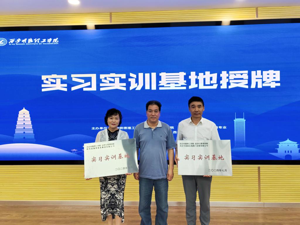 签约仪式上,郭鹏院长代表学校与陕西康养家政集团有限公司、陕西海蓓医疗健康集团公司分别签订了校企合作框架协议并向两家“校外实习实训基地”企业授牌。各方均表示,将通过校企合作与产教融合,共助大健康产业发展,开展多方面、深层次、宽领域的合作项目,努力为社会培养更多的高素质应用型健康管理人才。