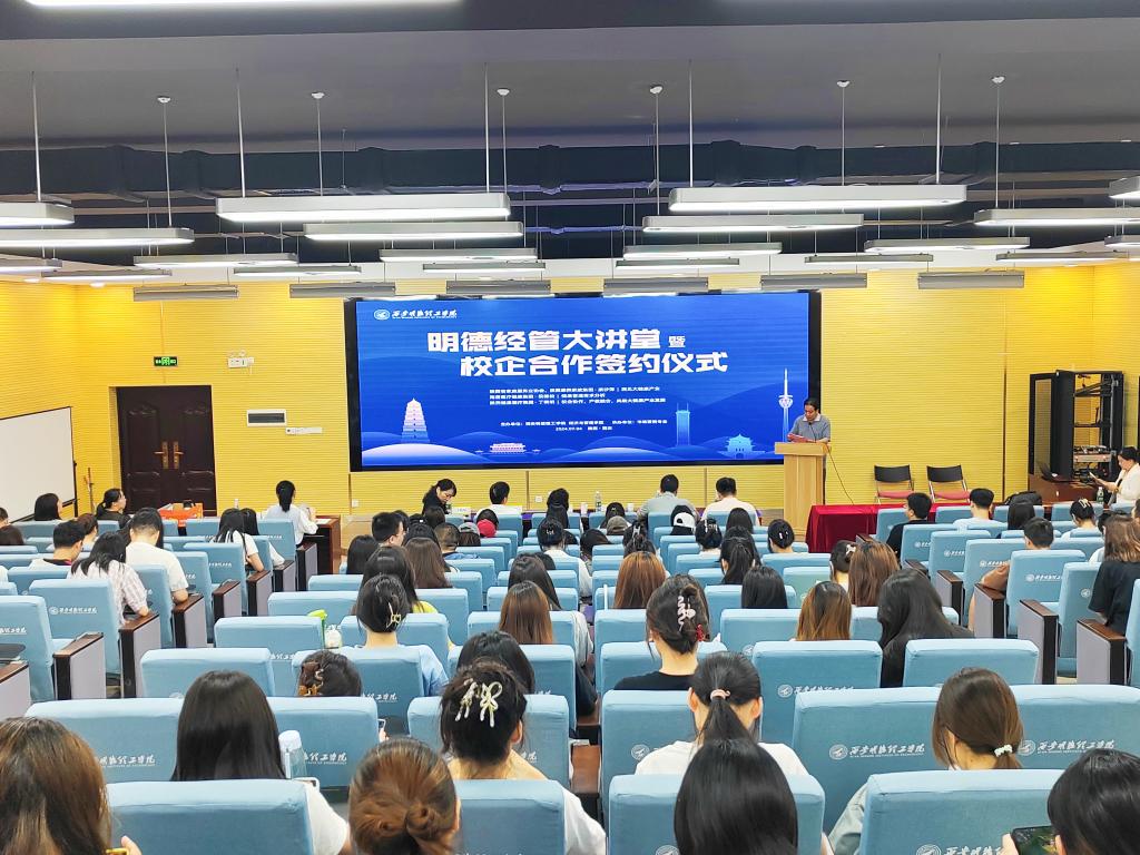 明德经管大讲堂环节,陕西省家庭服务业协会常务副会长兼秘书长、陕西省家政服务标准化技术委员会秘书长康沙萍带来《洞见大健康产业》的精彩分享,陕西海蓓医疗健康集团董事长段德松则以《健康管理需求分析》为话题进行交流,陕西健康医疗集团人力资源部副部长丁晓明分享了《校企协作,产教融合,共助大健康产业发展》的内容。三位企业家用深入浅出的讲授,呈现了一场新知盛宴,带给同学们不同于以往的课堂感悟。