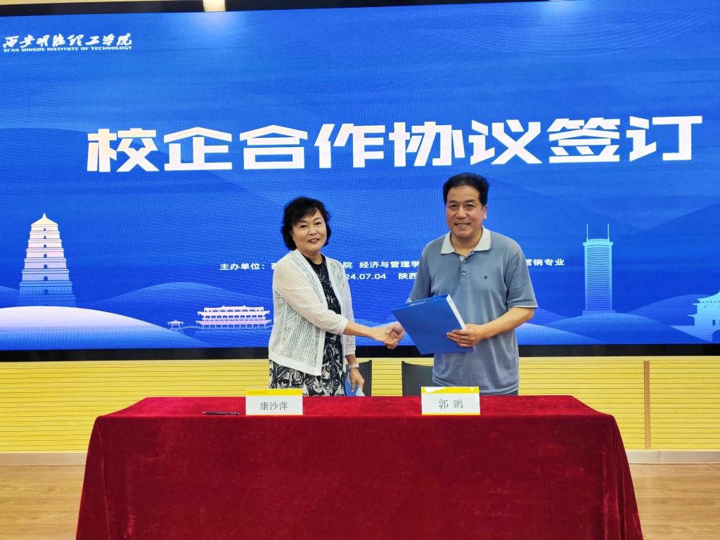 7月4日,由经济与管理学院主办、市场营销专业承办的经管大讲堂暨校企合作签约仪式成功举办。beat365vip官网登录入口经济与管理学院院长郭鹏、副书记冯纪潮、市场营销专业负责人付铁岩、专业教师秦东方,陕西省家庭服务业协会常务副会长兼秘书长、陕西省家政服务标准化技术委员会秘书长、陕西康养家政集团有限公司监事康沙萍,陕西海蓓医疗健康集团董事长、西部企业家商会副会长段德松,陕西健康医疗集团人力资源部副部长丁晓明,西安市高新区海蓓门诊部有限公司会员部经理杜巧娟以及师生代表100余人参加了活动,活动由经济与管理学院教师黄婕主持。