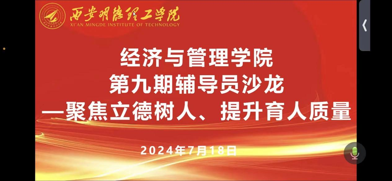 为落实立德树人根本任务,提升学生工作育人质量,加强辅导员队伍建设,提高辅导员队伍工作能力和水平。7月18日晚,经济与管理学院通过线上会议的形式举办第九期辅导员工作沙龙,学院党委书记兼行政副院长何文举、副院长许萍、金融产业学院副院长刘敏、副书记冯纪潮、办公室主任张蓓、教师代表秦东方及全体辅导员参加了活动,活动由冯纪潮主持。