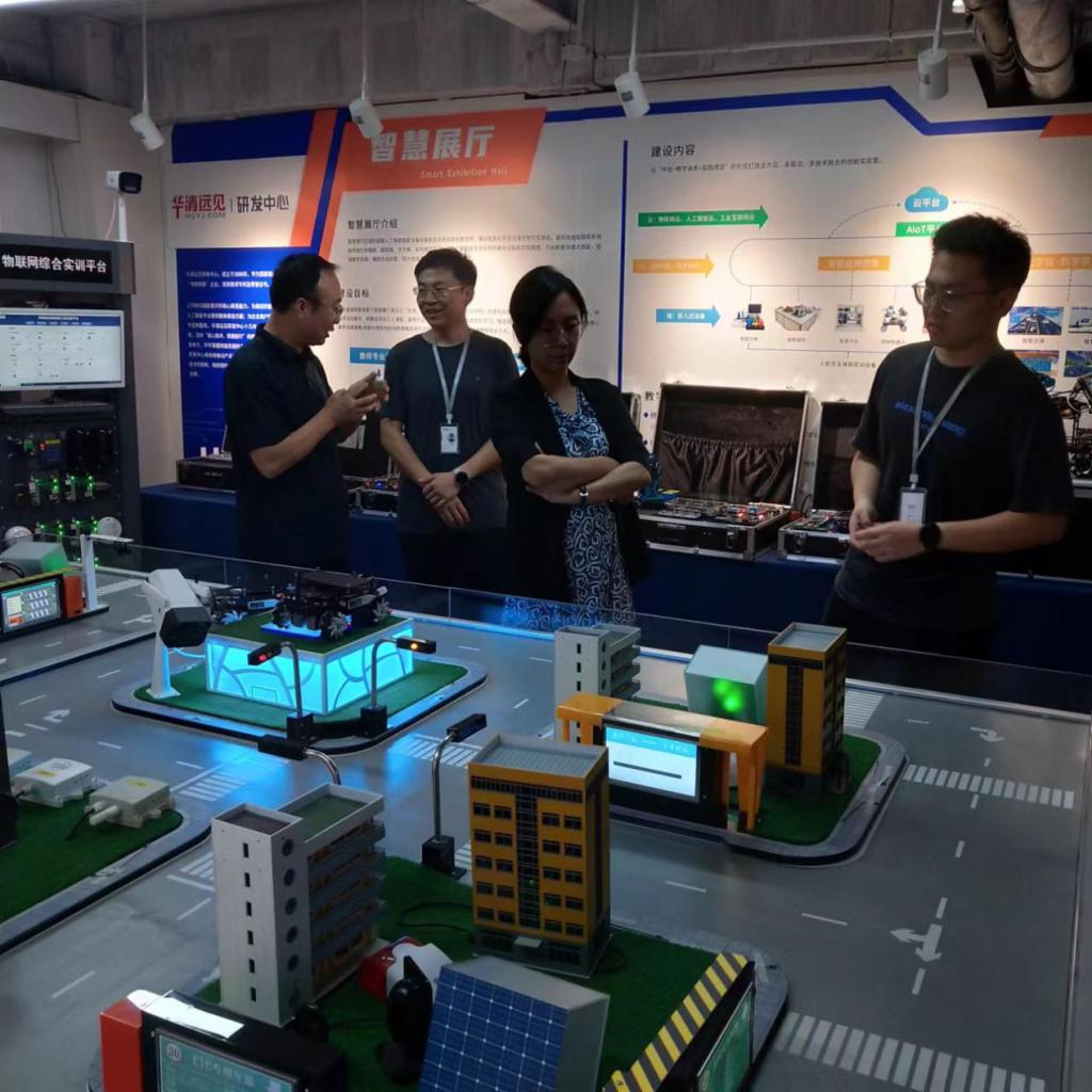 8月20日访问华清远见集团。集团副总裁陶金华、研发中心经理赵松和研发中心区域主管边海东等参与活动并进行了现场交流。双方就夯实打造大学生校外实践教学基地,为学生提供更多实习实践平台,促进复合型、创新型人才的培养等内容进行了热烈的研讨,并在教学资源共享、课程共建等多个领域进行了广泛深入的讨论。
