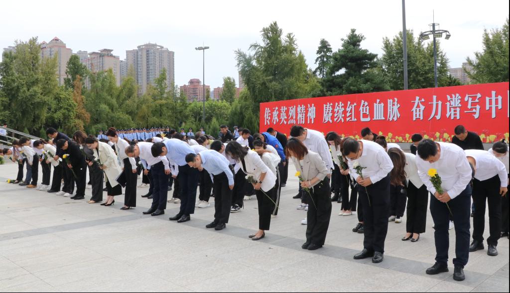 师生党员们逐一为烈士墓碑献上鲜花,大家在烈士墓碑前驻足凝望,深情鞠躬,表达对革命先烈的深切缅怀和崇高敬意。一朵朵鲜花,不仅是对革命先烈生命的礼赞,更是新时代青年对红色基因的赓续和传承。