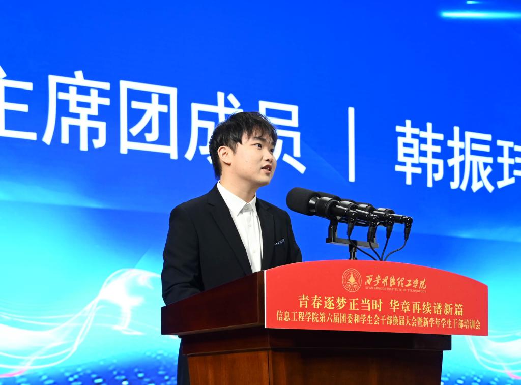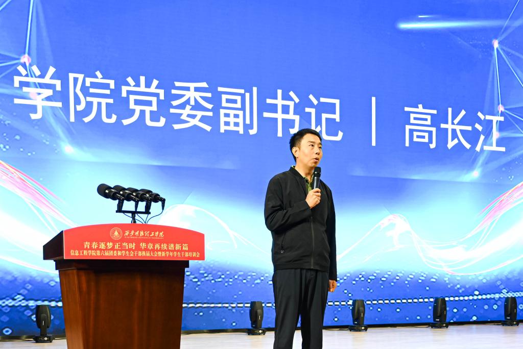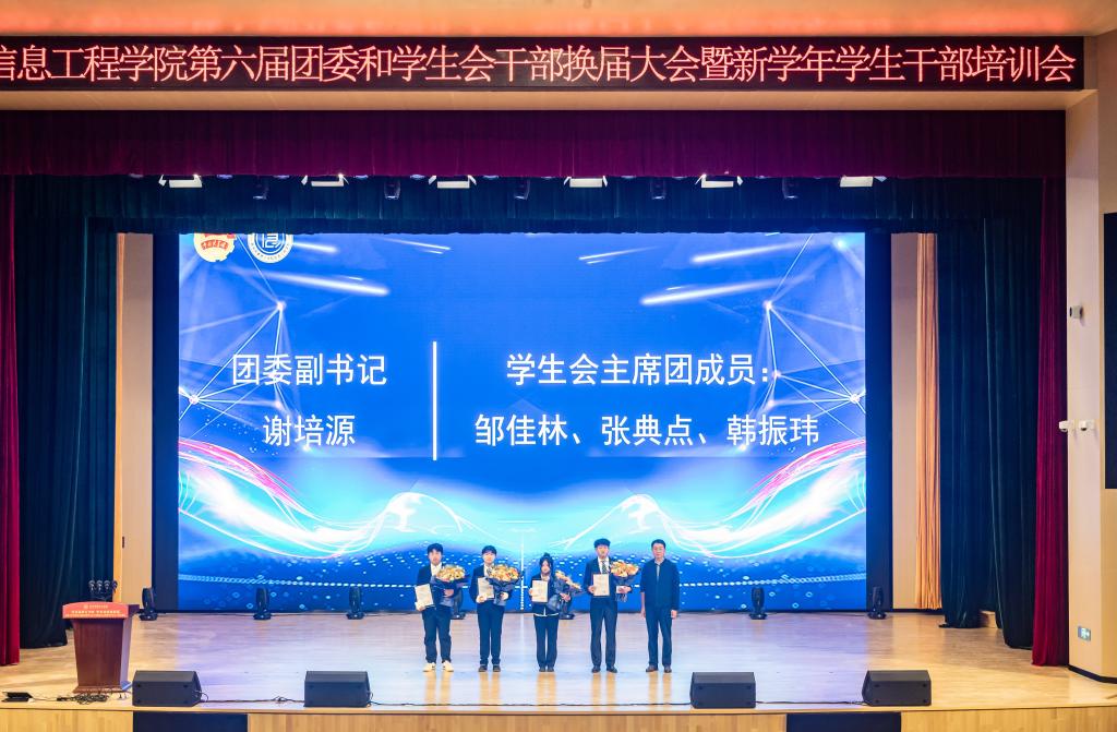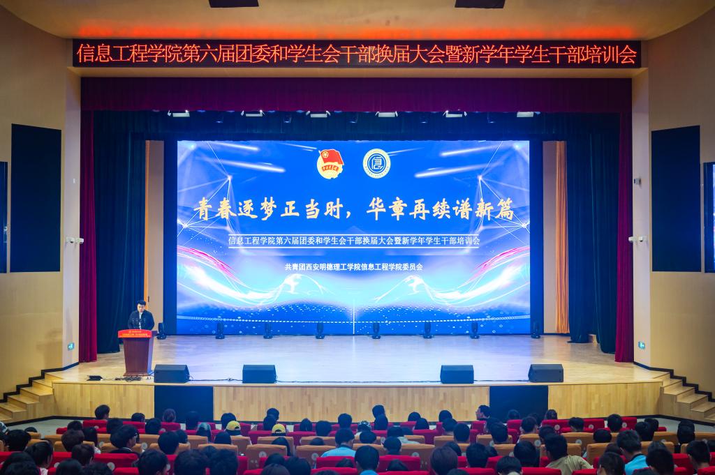 为推进信息工程学院团学组织建设,充分发挥学生干部服务职能,凝聚青春力量,展现青年风采,9月29日,信息工程学院第六届团委和学生会干部换届大会暨新学年学生干部培训会在学校四季廊桥报告厅举行。本次大会有幸邀请到了西安石油大学计算机学院乔晓老师、学院党委副书记高长江、团委书记王佳龙以及学院各位辅导员参加。