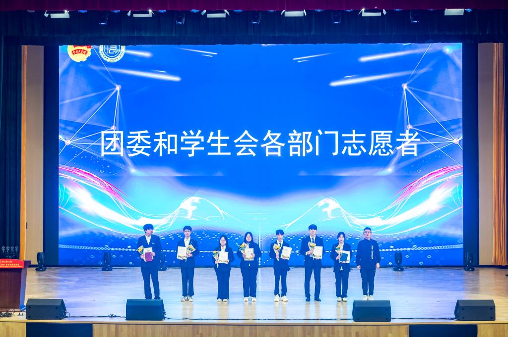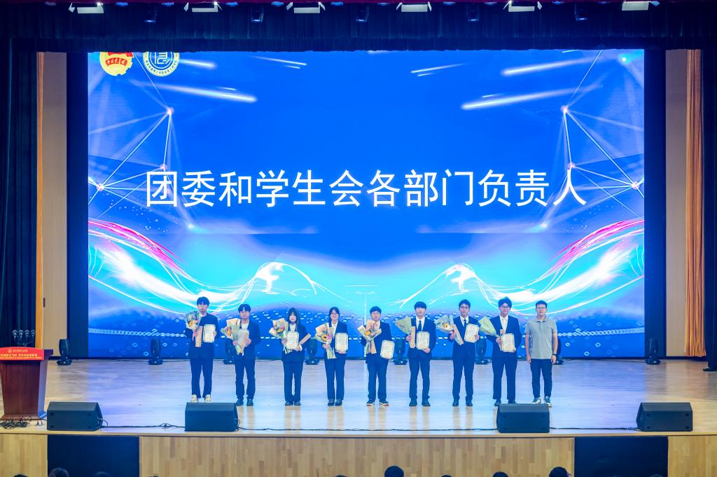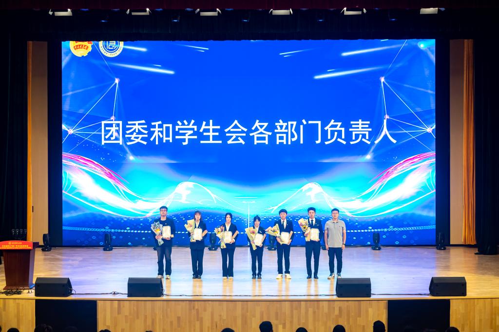 大会伊始,全体起立,共唱共青团团歌。接下来由各位老师为上一学年表现优异的团学干部们颁发聘书。随后上一届学生会主席团成员韩振玮上台发言,他回顾了自己在学生会的三年经历,表示在学生会自己得到了很大的提升,并且向下一届学生干部们提出了几点建议,希望他们能做到以服务同学为宗旨,配合学院和老师做好团学工作。