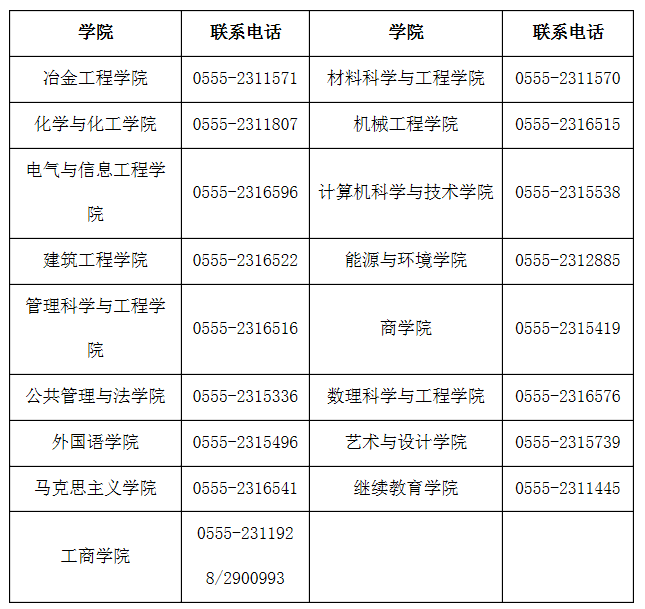 (2)第二联系人:校友工作处,联系电话:0555-2311907