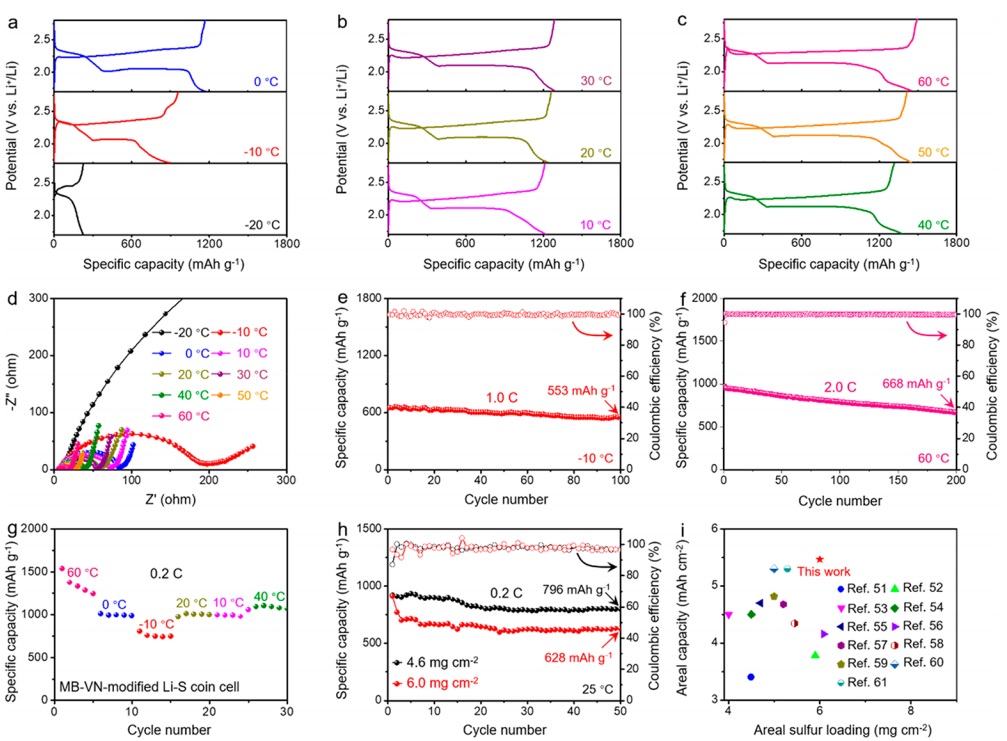 近年来,锂硫电池在极端环境(如高低温环境)下的工作状态逐渐成为研究热点,在高温下,中间产物多硫化锂的转化反应会加快,但穿梭效应愈发明显;而低温下,由于电解液粘度增大等原因引起的离子传输速率变慢会大大降低多硫化锂的转化反应动能。因此,研究解决锂硫电池在宽温域条件下的问题显得尤为重要。