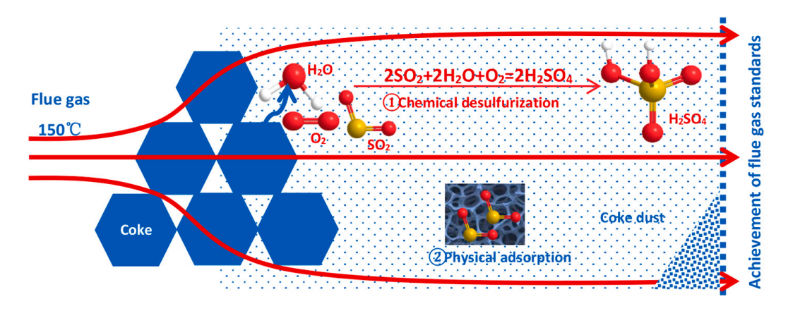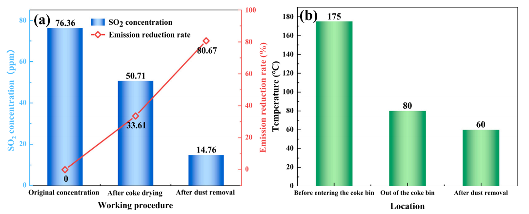 针对烟气余热利用率低和烟气脱硫成本高的难题,本研究提出了一种烟气低温余热利用协同脱硫的新方法,利用热风炉低温烟气余热烘干焦炭,在焦炭烘干同时实现烟气脱硫,将烘干焦炭和烟气脱硫一体化,提高综合效率,降低建设成本。团队在实验室模拟装置上对热风炉低温烟气烘干焦炭同步脱硫进行研究,揭示了焦炭烘干同步脱硫机理,确定相关工艺参数,形成新技术,并进行工业应用。