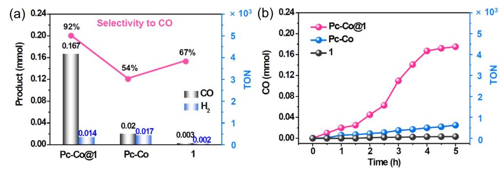 (催化剂Pc-Co@1, Pc-Co和金属笼1的光催化CO2还原性能)