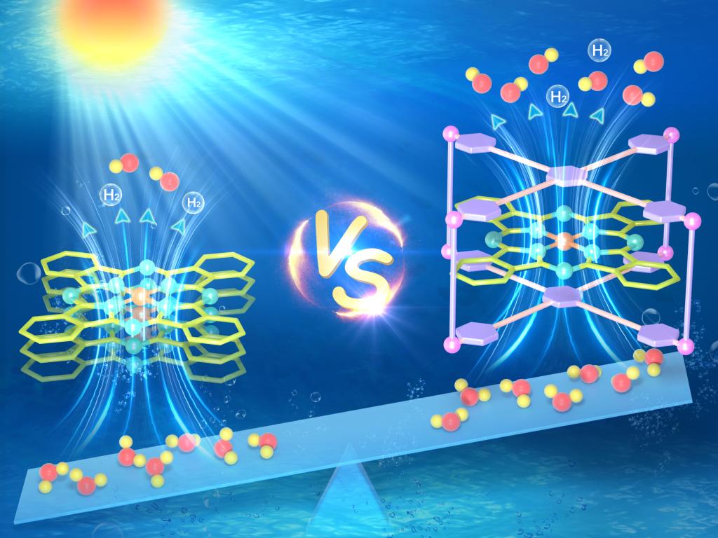 (分子催化剂Pc-Co和超分子催化剂Pc-Co@1催化CO2光还原性能对比示意图)
