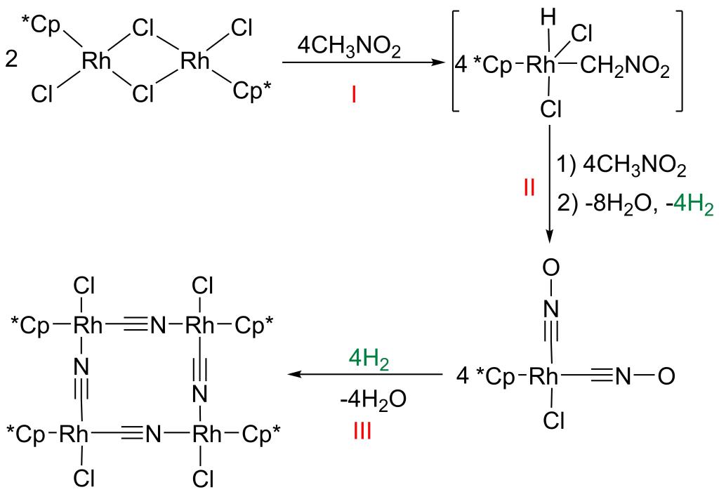(硝基甲烷活化形成金属环和金属笼的反应机理)