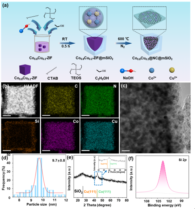 (Co0.8Cu0.2@NC@mSiO2催化剂制备及表征图)