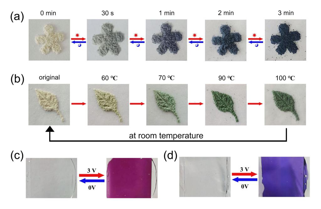近年来,能够对外部刺激(例如光照、温度、电场、磁场、pH值和压力等)进行响应的变色材料引起了广泛关注,在智能窗户、电子显示器、存储设备、光学开关和化学传感器等方面有较好应用前景。目前的刺激响应变色材料,大多数仅可以对单个或两个外部刺激产生响应,对于具有多重刺激响应变色行为的材料的研究还相对有限。然而,某些特定的应用,如多重防伪和多层级信息加密,则要求同一材料能够响应三种或更多种外界刺激而产生变色。因此将多个官能团整合到同一个化合物中并构建多重刺激响应的变色材料仍然具有挑战性。