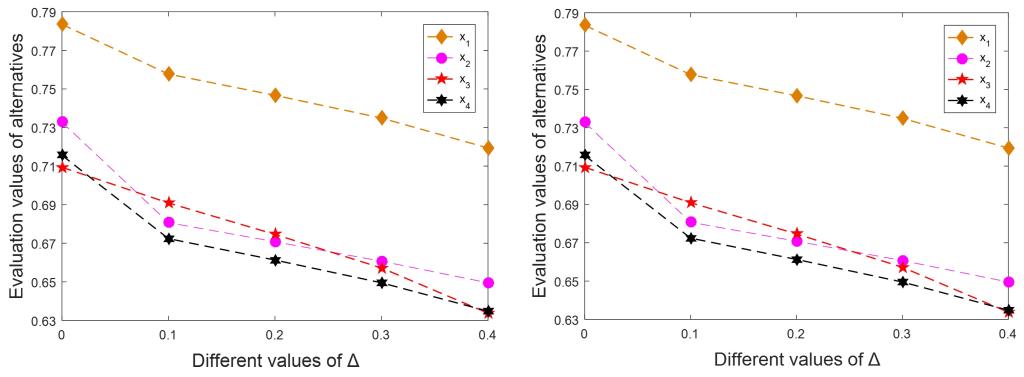 (参数Δ和γ对备选方案排序的灵敏度分析)
