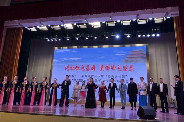 音乐会节目精彩纷呈,巢湖民歌《八百里湖水情》《绿浪滚滚迎面来》,当涂民歌《唱得绿海泛金波》《勤嫂子》等,一首首曲调悠扬的民歌小调,独具魅力的地方文化艺术,把现场观众带进了美丽的徽山皖水。独唱《我爱你中华》、小合唱《火红的日子万年长》、男声组合《把一切献给党》及压轴合唱《我爱你,中国》,唱出了心中最真挚的情怀,激发了广大师生爱党爱国热情。