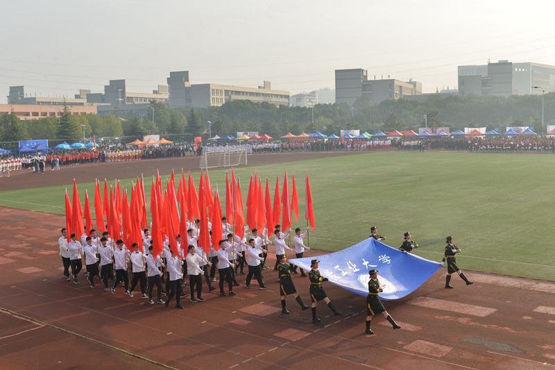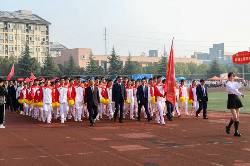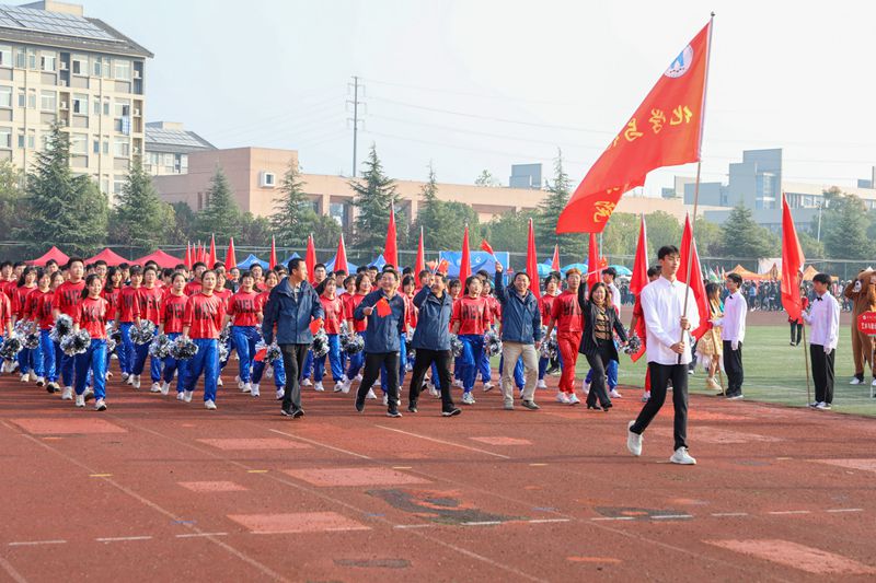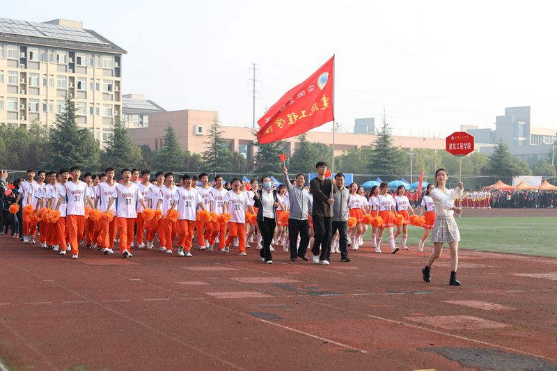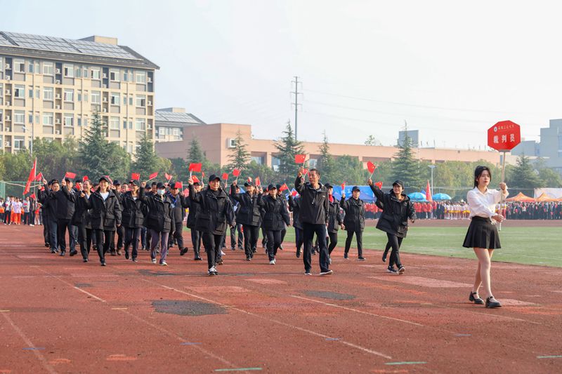上午八点整,伴着铿锵有力的《运动员进行曲》旋律,校旗护旗手健步走向主席台,由建工学院48名旗手组成的红旗方阵和裁判员方阵紧随其后。学生代表队和教职工代表队按照既定顺序入场,以最饱满的精神、最自信的风采依次走过主席台。