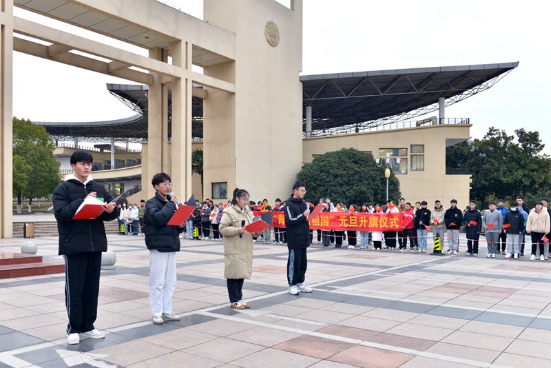 1月1日上午,beat365官网在秀山校区主教学楼广场举行“青春奉献祖国”元旦升旗仪式。安全保卫部、团委相关人员、校院学生组织负责人共300余人参加了活动。