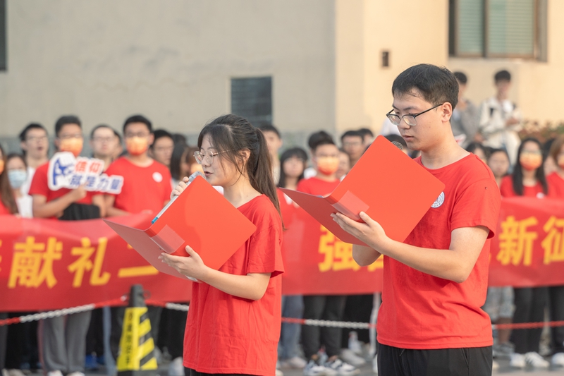 升旗仪式后,校学生会与校艺术团齐声朗诵诗歌《永远跟党走》,表达了对祖国的深情礼赞。校学生会主席团成员王晓雨发表国旗下演讲,她表示广大青年生逢其时,肩负着民族复兴的时代重任,要用“复兴栋梁、强国有我”的信念勇当开路先锋,用“生逢其时、重任在肩”的担当争做事业闯将,用“乘风破浪、披荆斩棘”的魄力吹响青春号角,踔厉奋发、勇毅前进,为实现中国梦贡献青春力量。