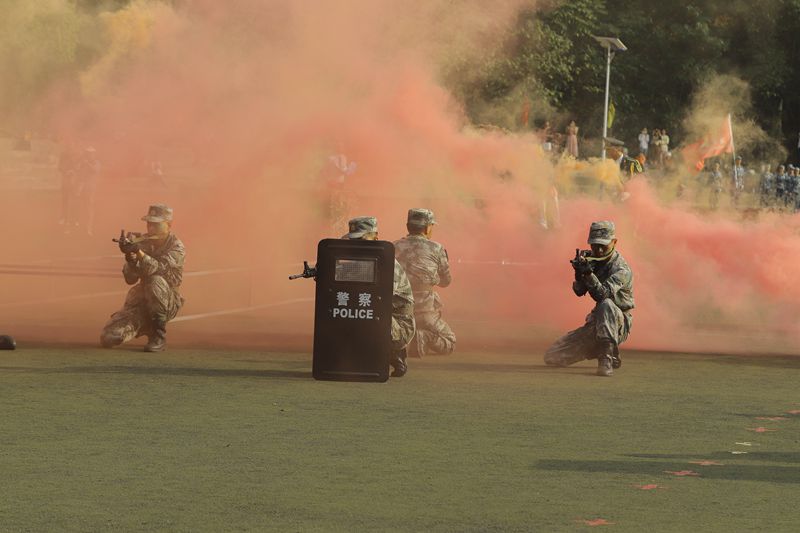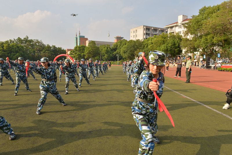 大会在雄壮的国歌声中开始。校党委书记陆林发出“开始”指令,军训成果汇报正式拉开帷幕。来自14个学院的14个队列展示方阵以高昂的士气、严整的军容、挺拔的军姿、嘹亮的口号、整齐的步伐依次经过主席台。特色方队分别展示了擒敌拳、匕首操、战术和战场救护等训练科目。由beat365官网学生退伍军人组成的承训教官方队展示了精彩的格斗表演。广大新生和承训教官英姿飒爽,尽显青春风采和昂扬斗志,赢得了在场领导、嘉宾和师生的阵阵掌声。